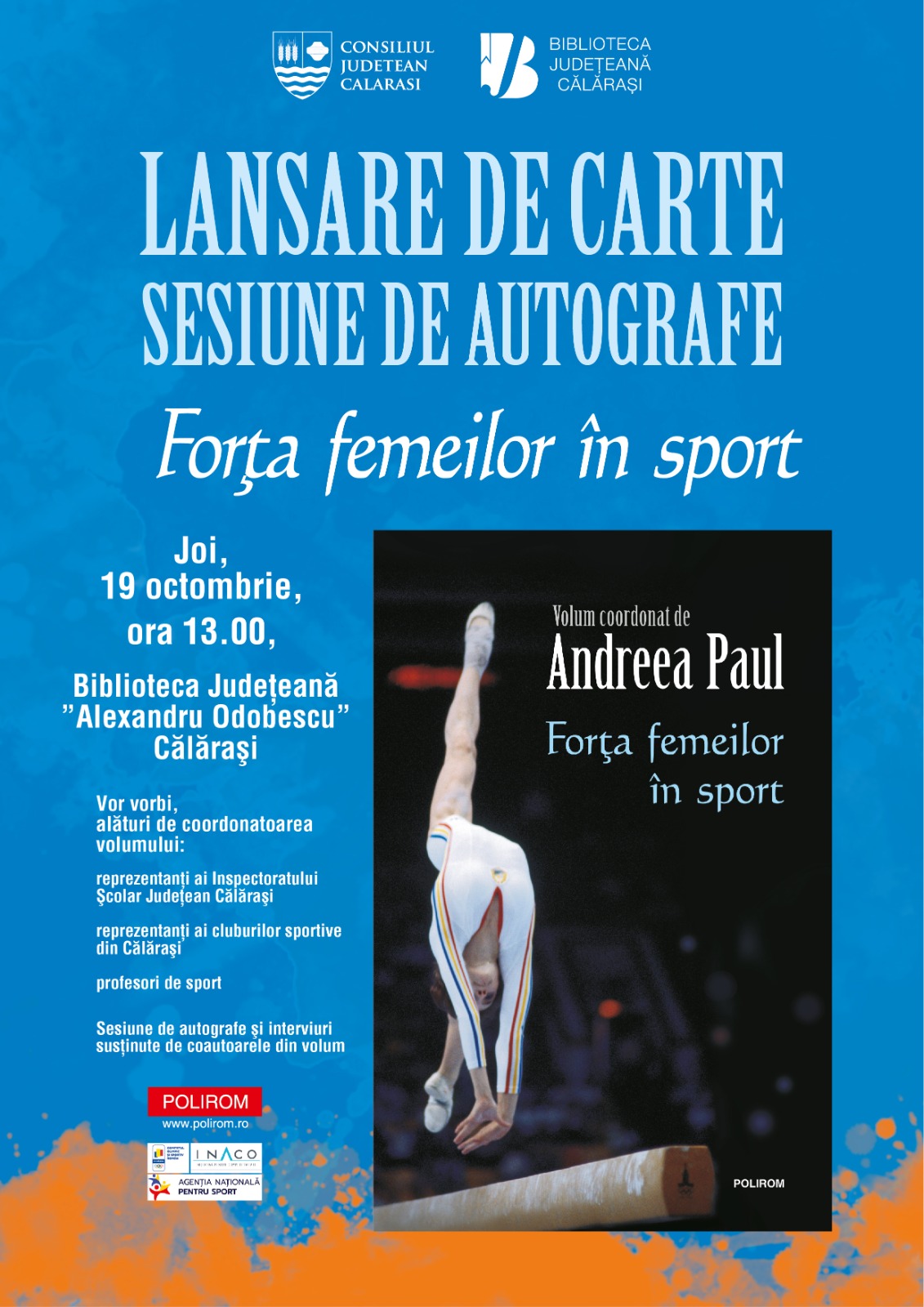 Volumul „Forţa femeilor în sport”, care reuneşte memoriile a peste 80 de foste şi actuale sportive, dar şi antrenoare şi jurnaliste, va fi lansat joi, începând cu orele 13.00, la Biblioteca Județeană Călărași.