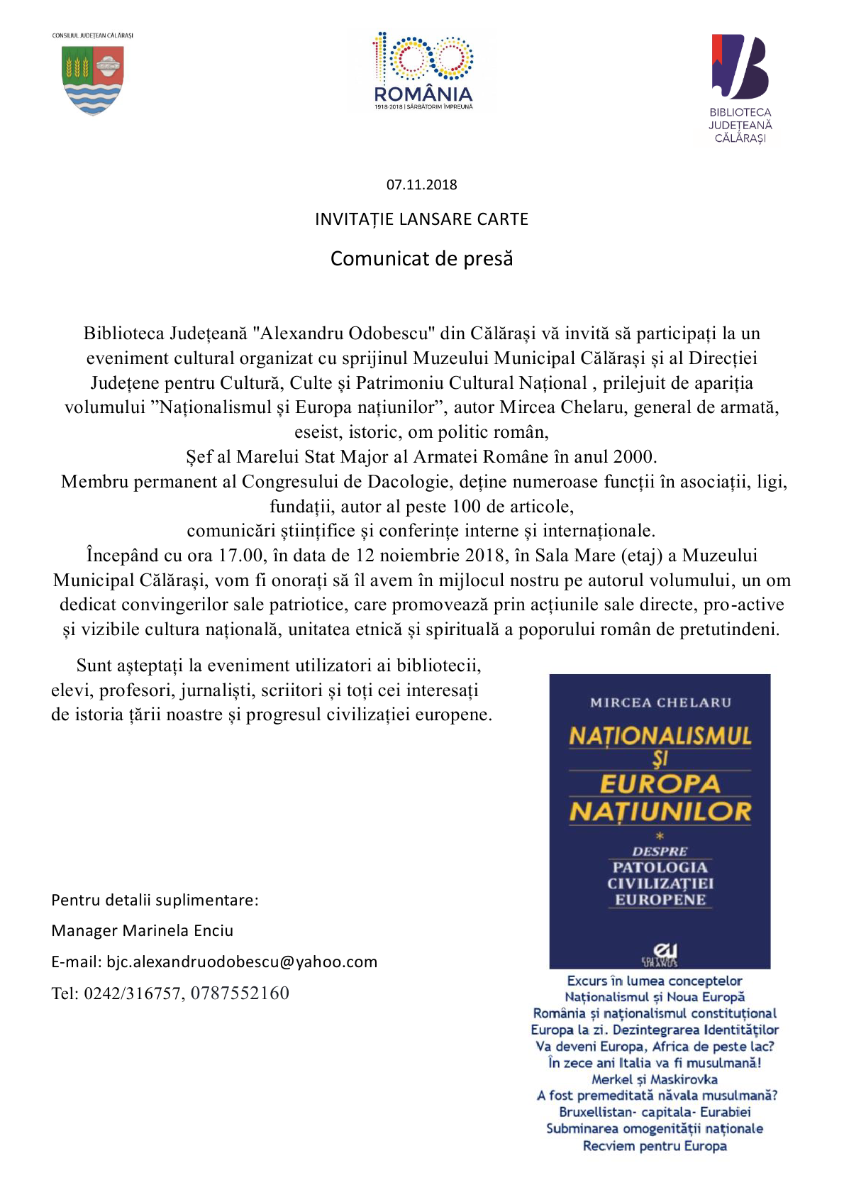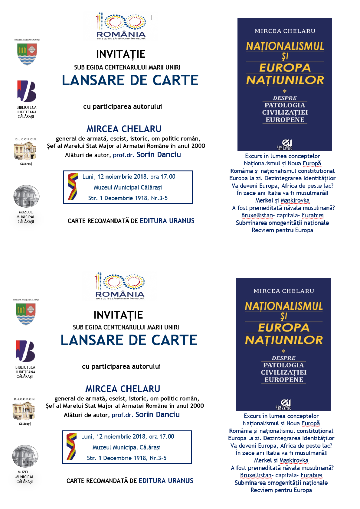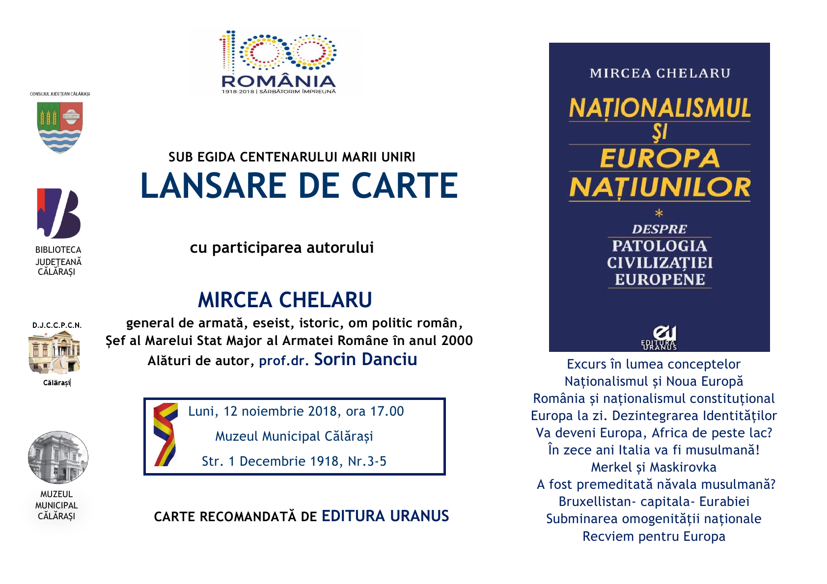 Lansare de carte cu participarea autorului MIRCEA CHELARU alaturi de prof.dr. SORIN DANCIU