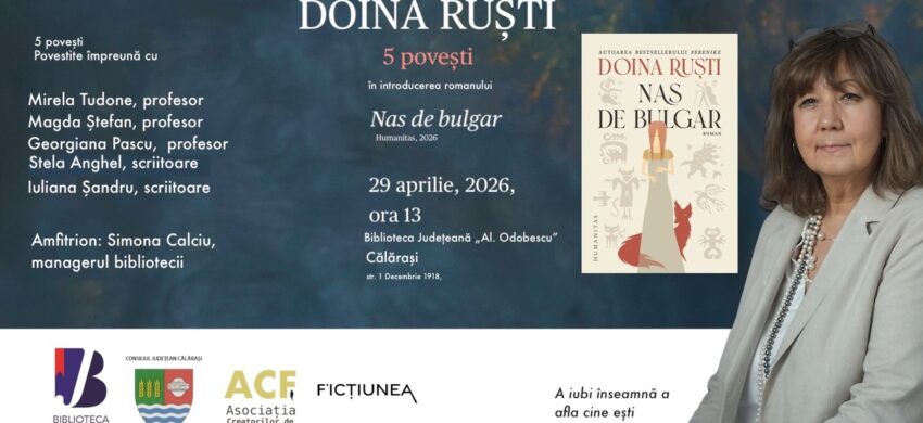 Pe 29 aprilie 2026, Doina Ruști va susține un performance narativ la Biblioteca Județeană ”Al. Odobescu”, din Călărași.